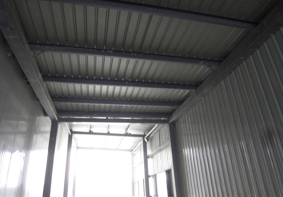 框架构成:主框架由H型钢、C\Z型钢组成;维护结构根据不同的地区、不同的温度、不同的使用要求可以采用单层彩钢板、双层彩钢板+玻璃丝棉毡、EPS复合板、岩棉复合板、PU复合板等。